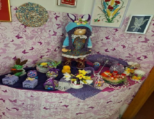 Izdelki ročnih del, ki nastajajo v društvu pod vodstvom mentorice Marije Tekavec.
